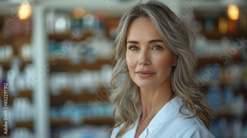 Confident 50-Year-Old Woman Picking Up Prescription at Pharmacy - Realistic Scene of Beautiful Female Getting Medication