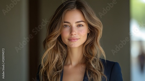 Confident businesswoman in a navy blazer, embodying professionalism and determination.