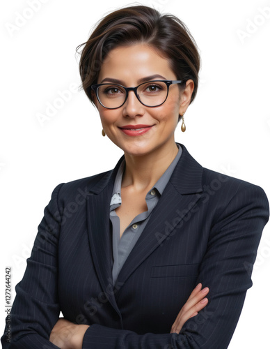 Confident Businesswoman Portrait Professional Woman Glasses Short Hair Corporate Attire Arms Crossed