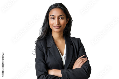 Confident Indian Businesswoman in Black Suit Posing with Arms Crossed