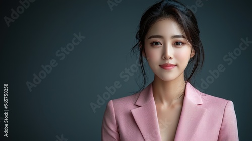 Confident Korean Businesswoman in Pink Suit - Professional Young Female Executive Posing in Clean Background