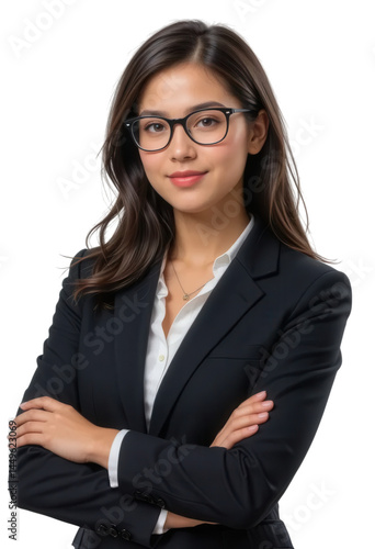 Confident Professional Woman in Business Attire with Glasses and Crossed Arms