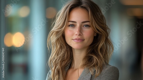 Confident Professional Woman Portrait Indoors with City Background. Corporate Anthropologist