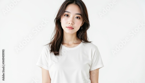 Confident woman in white shirt and black shorts, a stylish summer fashion portrait