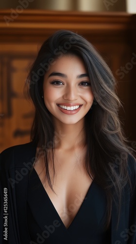 Confident young graduate in black gown smiling with academic achievement