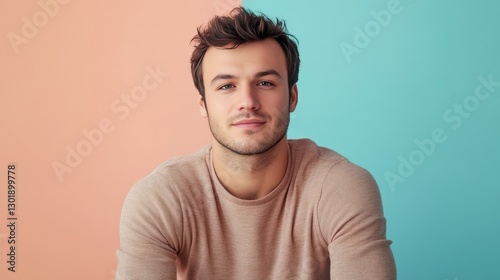 Confident Young Man Posing Against a Colorful Background in a Casual Sweater