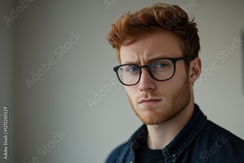 Confident Young Man with Glasses in Casual Attire Posing for a Portrait
