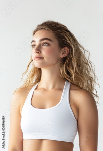 Confident young woman with wavy hair looking away