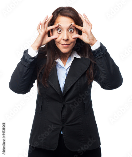 cool business woman open eyes