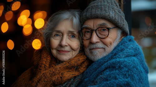 Couple enjoying a cozy moment together indoors surrounded by warm lights and soft blankets during winter. Generative AI