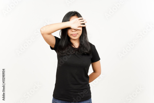 Covering Eyes With Arms of Beautiful Asian Woman Isolated On White Background