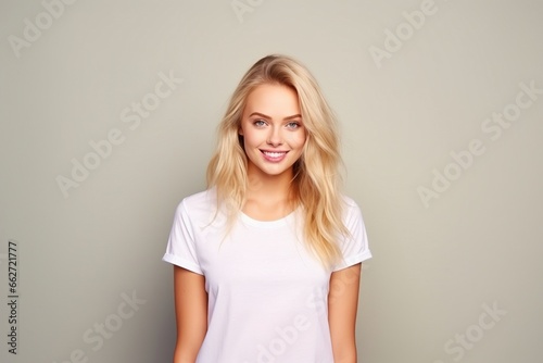 Crisp Elegance: Attractive Female in White T-shirt on a Minimal Background
