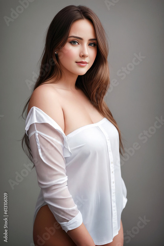 Curve redhead woman plus size model in casual dress,  bold and bright colors colored background. Generative AI