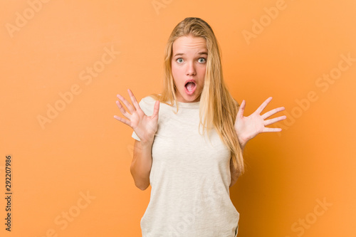 Cute and natural teenager woman celebrating a victory or success, he is surprised and shocked.
