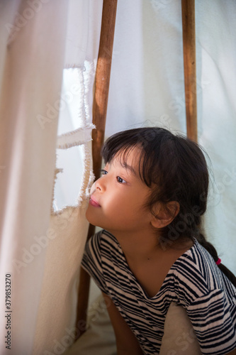 Cute Asian girl playing hide and seek