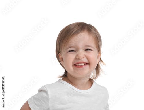 Cute little baby girl on white background