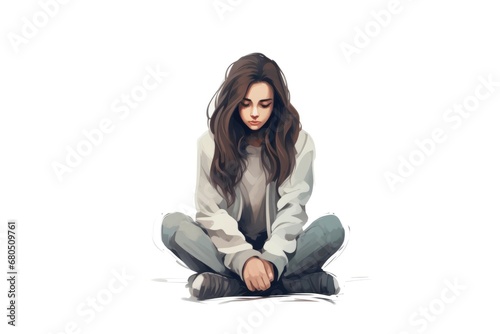 depression woman sit on white background