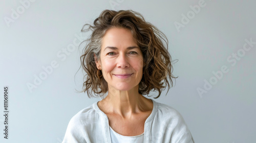 Detailed Headshot of Cheerful Mature Woman in Summer Fashion