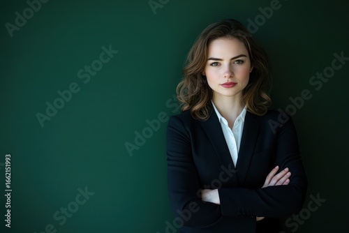 Determined female lawyer in black suit pose