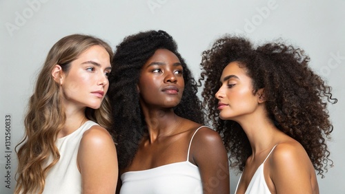 Diverse group of women with unique hairstyles posing together in studio setting to celebrate beauty and individuality