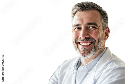 Doctor in white coat, realistic style, white background, concept of healthcare. Ai generative