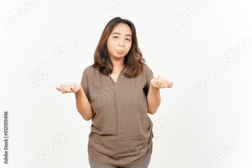Doubt Confused, Don't know Gesture of Beautiful Asian Woman Isolated On White Background