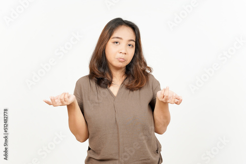 Doubt Confused, Don't know Gesture of Beautiful Asian Woman Isolated On White Background