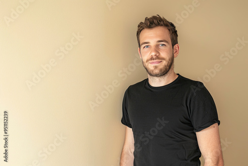 Dynamic Simplicity: Man’s Portrait in Beige Setting