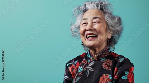 Elderly Asian woman laughing heartily in a modern 5 1 woman, senior, face, smiling, old, mature, smile, person, lady, hair, beauty, people, blond, elderly, grandmother, looking, blonde, happiness, mo