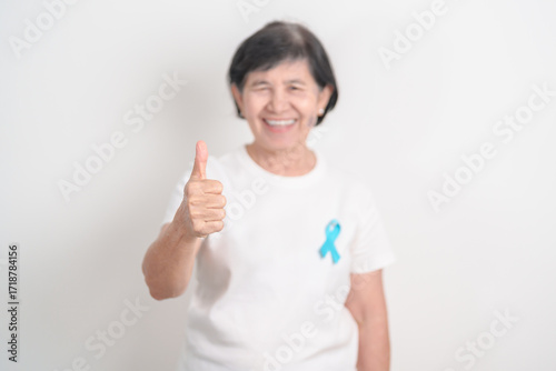 Elderly with blue Ribbon for concept of blue November, November Prostate Cancer Awareness month, World Diabetes day , Men Health month, International men, Father day. Healthcare and world cancer day