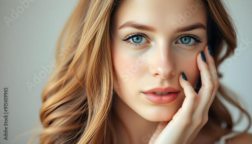 Elegant Beauty Portrait Close-Up of a Young Woman with Flawless Skin