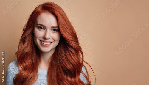 Elegant Portrait of a Smiling Woman with Pastel Background and Studio Lighting