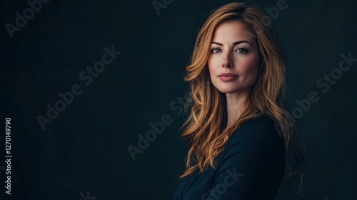 Elegant Portrait of a Woman with Long Hair Against a Dark Background