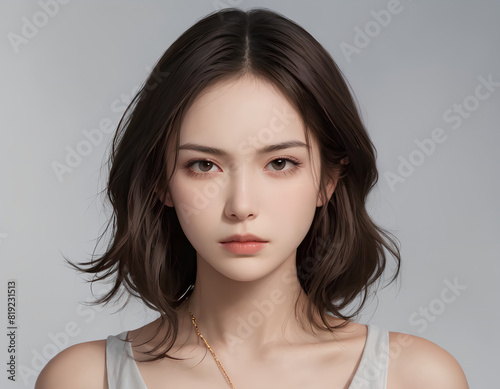 Elegant Portrait of a Young Woman with Short Hair, Intense Gaze