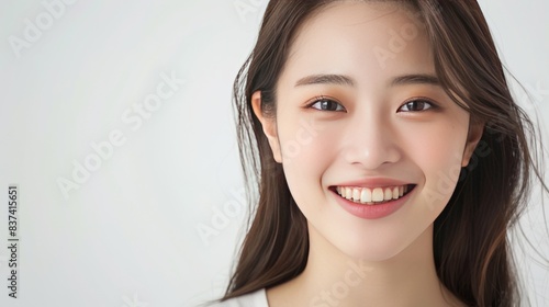 Elegant Shot of a Joyful Young Woman, Emphasizing Skin Care Beauty, Cosmetic Radiance, and Dental Health Against a White background.