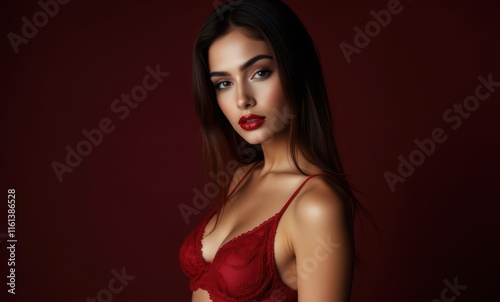 Elegant woman in red lingerie portrait