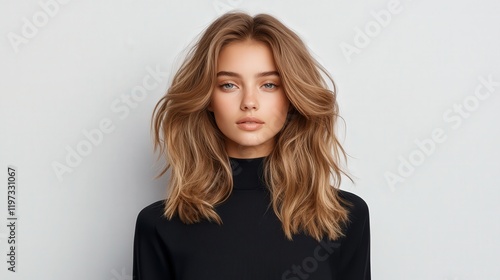 Elegant Woman with Long Hair Dressed in Black Top Posing Confidently in Natural Setting Exuding Grace and Style Capturing the Essence of Beauty