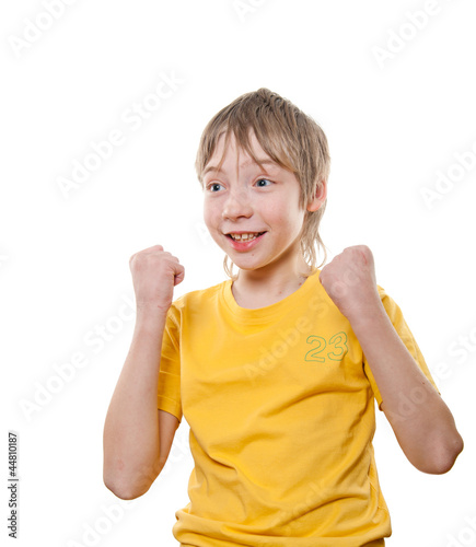 Emotional portrait of a boy of 10-12 years.