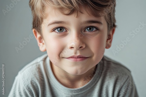 Energetic Close-Up Portrait of a Thoughtful Caucasian Boy with Light Brown Hair