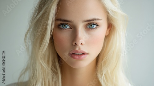 Ethereal Portrait of a Beautiful Young Woman with Stunning Blue Eyes and Blonde Hair