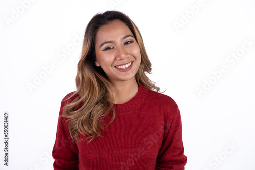 Excited young asian woman with raised hand celebrating success Portrait cheerful positive asian female with raised hands and fists open mouth Girl get happy enjoy life Light white background.