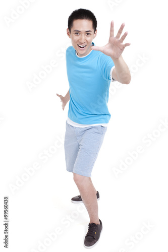 Excited young man gesturing