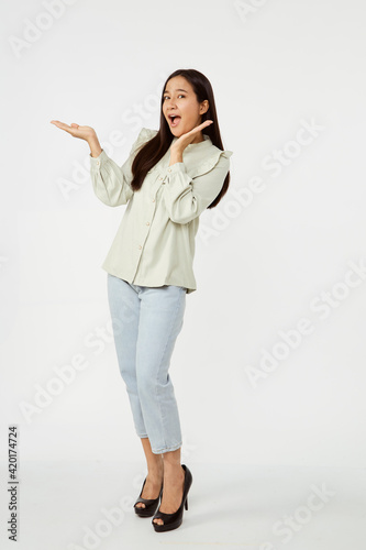 Fashion model wearing jeans shirt with emotions