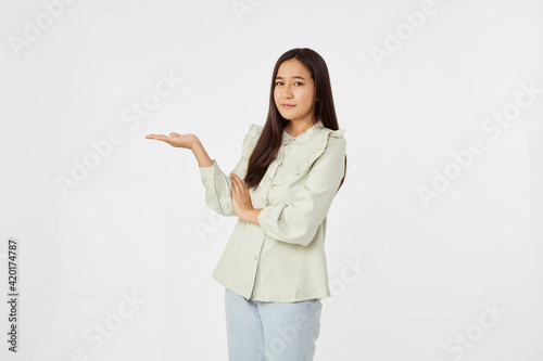 Fashion model wearing jeans shirt with emotions