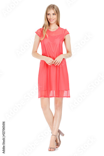 Fashion photo of young magnificent woman wearing dress