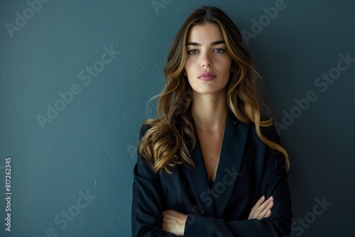 Fashion portrait, attractive woman. Beautiful female model with pretty hair, person in stylish elegance..