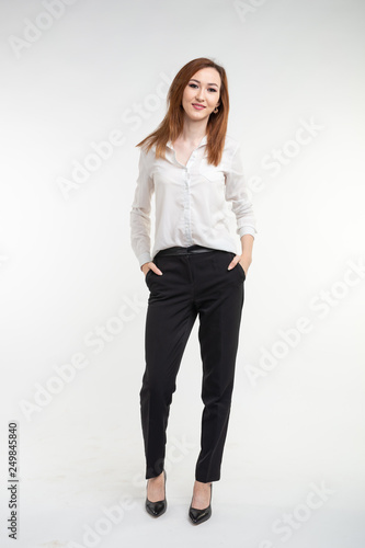 Fashion, style and people concept - pretty young asian woman over white backgroung