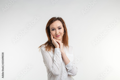 Fashion, style and people concept - pretty young asian woman over white backgroung