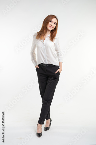 Fashion, style and people concept - pretty young asian woman over white backgroung