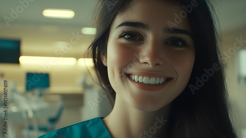 Female Dentist in Modern Clinic with Friendly Smile and Confidence